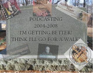 When I was a serious podcast addict, this would be about 2005-2008, I probably had 40 or so shows I listened to almost 24/7 every week without fail. This “first wave” was a very exciting time, sort of like the Oklahoma land rush of 1889, only without cholera, Indians, and kids selling cow poop and glasses of water to people who rode out into the wilderness completely unprepared. My day generally started with tech shows (Twit, Geek News Central, Technorama) while showering and during the morning commute. The 8-5 slot was reserved for music casts (Getting a Leg Up, Insomnia Radio, Coverville), meeting schedule pending. The lighter, geekier stuff (Slice of SciFi, Deadpan, Evil Genius Chronicles, Geologic) accompanied dinner and whatever I was working on for the evening, as I am famous for loathing and refusing to watch television. Let’s face it, despite being a lonely single guy living alone in a very big, dark, quiet house, I craved the sound of human voices, and as as someone who has never really been a fan of other people in general, radio personalities (those voices you never have to meet or deal with) were natural substitute for human interaction (this was, of course, the days before radio personalities became people you wouldn’t want to idolize, emulate, or socialize with at a cocktail party under any circumstances). But podcasters were more than that. I could chat, email, Skype, and interact with them any time I felt like it, and once I became a podcaster myself (thanks to some helpful advice and words of encouragement from a few of them), they became peers, partners and friends. Honestly, at the time, I didn’t know if I was part of an obscure in-joke, an underground movement, or the ground floor of the next big thing, but it didn’t matter. (I later found out it was none of those, and I was actually an initiate in a sex cult, by the way … “podcasting” was just a euphamism. I’ll know how to recognize them early on next time.) This was one of the few times I really clicked with a social group on-line since the heady days of alt.music.progressive.thrak.thrak.thrak. I laughed my ass off with these people during their good times, felt sympathy for them during their hard times, and even drank a virtual toast with them via Twitter after a dark April Fool’s day that saw the untimely passing of one of our own. It was a very cool time for me.