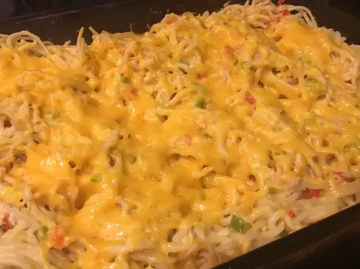 Step 2: Throw in a box of spaghetti, cook it with the turkey, and drain. You should now have a calendar full of shredded turkey bits, and spaghetti that was cooked in “turkey water.”