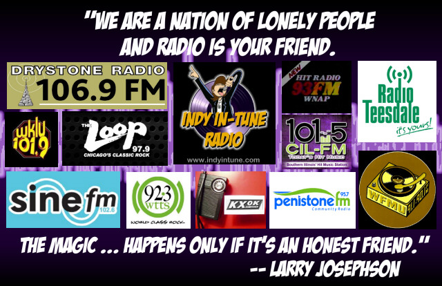 Had some free time and have been wanting to do this for a while. I made this poster of radio stations, past and present, that have influenced and inspired me — some as a little kid staring at the glow of a transistor radio on the table next to his bed; others as an adult streaming digital feeds over the Internet to his earbuds. I plan to frame it and put it behind the console in Studio B as a reminder to myself about remaining true, never selling out, and always keeping in mind that there may be someone out there listening to … and being inspired by … your every word.