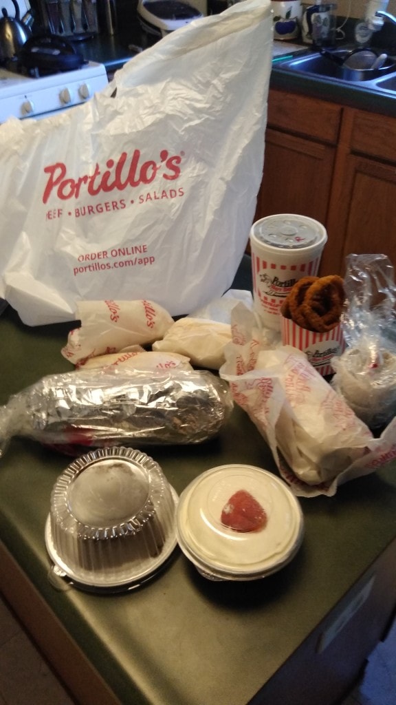 Despite my love of cooking and the fact that I’m really pretty good at it, I’ve never wanted to eat out so bad in my life. So much so, that (for the first time) I braved the “gig culture economy” and paid the extortionist Doordash fees and bought two of the most expensive Chicago dogs I will ever buy in my life from Portillos one night. Well, in full disclosure, I “bought” two dogs, and an order of chicken fingers with fries for the kiddo for something like $30 after fees and tips. I “received” the Gray family’s dinner for five: Two italian sausage sandwiches, one chicago dog, one combo beef sandwich, one Big Beef sandwich, and order of onion rings, a chocolate cake, a strawberry shortcake, and a large coke.