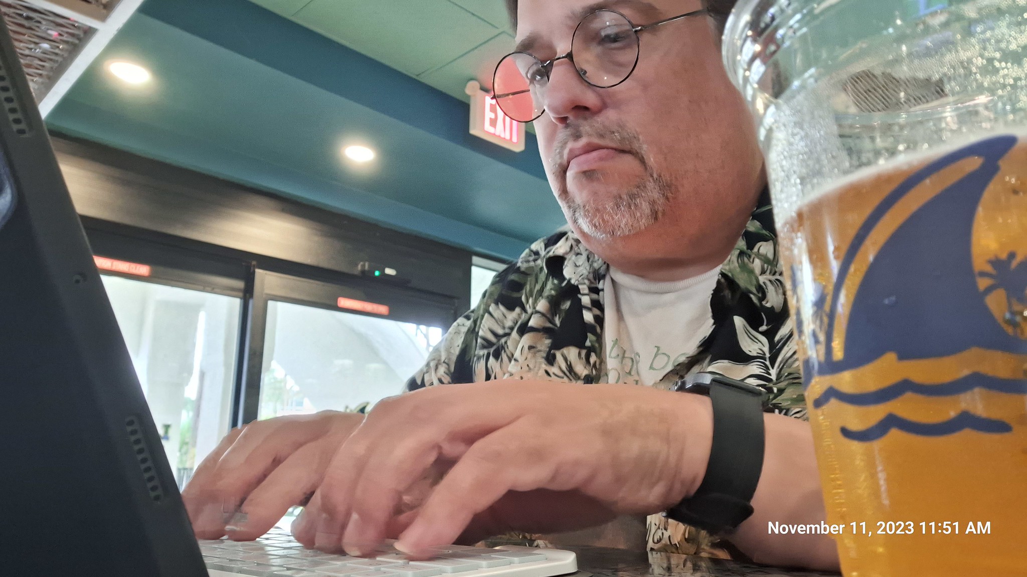 On the other hand, once I got the hang of the place, I found I really didn’t exactly hate it. First up. Wait a minute. Landshark Lager?! I love Landshark. I frequently buy that for the magic fridge in Studio B during the dog days of summer. That’s a fine Anheuser-Busch product right there. I had no idea it was the house beer at all Jimmy Buffett locations, but … okay … the guy has taste in beer. Add in margaritas priced like it’s 1977, plus the occasional friendly parrothead insisting on buying me one, and suddenly Buffett-world starts to look like an all-inclusive writer’s retreat.