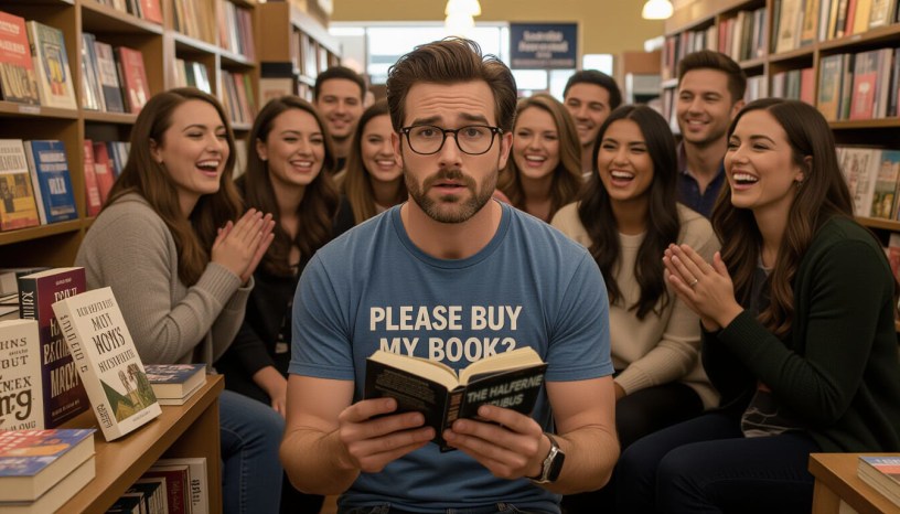 When I pivoted to writing, I thought, “At least I won’t be hauling mics and laptops up narrow staircases or begging people to tune in on Saturday to justify my existence and my guests drive up to Fishers.” Yeah, writers suffer almost the exact same grind with fewer roadies and more paper cuts. Every reader is earned one awkward plug at a time. “Er… I wrote about that on my blog last week,” you shout into the void. The void replies with silence, or worse, an AI cam-girl pastes her URL in your comments.