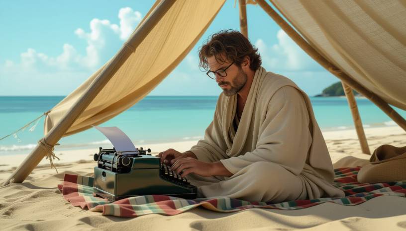 When I hit these troughs, I fantasize about unplugging, not a cutesy “digital detox” where you delete social media for a week and live entirely via email. I’m talking about doing the “hamhock dropTM,” smashing the router, drowning the phone in the toilet, telling your boss you’re not feeling particularly agile anymore, and disappearing under Sam’s Stick and Sheet on the pristine beaches of Weaver Bay. It’s a fantasy. Even if I had the will, I don’t have the logistics. So I did the next best thing: I gave the fantasy a name and turned it into a character in “that book I force myself to work on when I’m too lazy or tired to get up and wander the desert alone.” Enter Vidas Sheng.