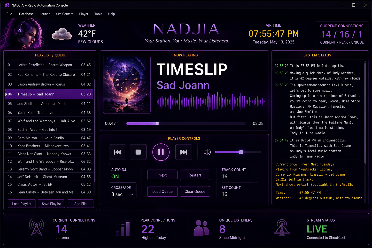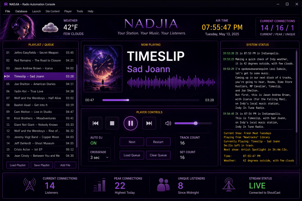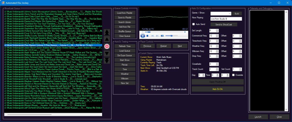 For the first time in at least five years, I fired up Visual Studio at home and revisited E.M.M.A. (Enterprise Music Management Application), my all-purpose streaming radio platform. Think giant MP3 player, library organizer, scheduler, and a dozen side tools duct-taped together over time. She’s been running Indy In-Tune out of my basement for sixteen or seventeen years. She’s a good girl.