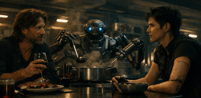 “I’m not offended, it’s just … a synthetic mind that enjoys cooking, but can’t eat, says prayers to a God he can’t believe in, thanking him for synthetic ingredients he pulled out of a wall dispenser and stirred into a stew?”
