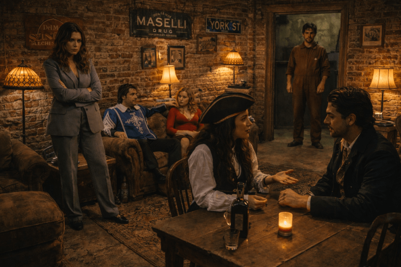 “Of course, my old friend,” the man said in an accent that was vaguely Spanish and not at all authentic, Serah noted. He led Parrino into the next room while the remaining five stared at her, curious.