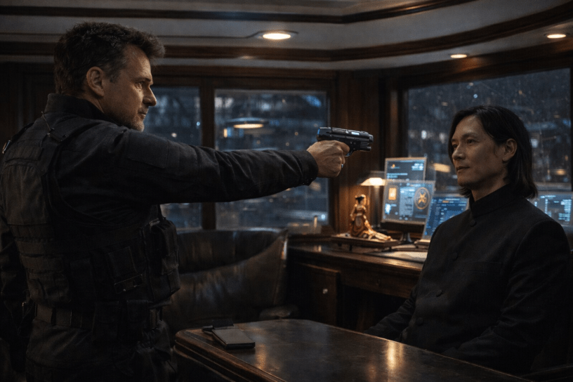 Locke smirked, extended a cable from a slot near the handle, and jacked it into the port behind his left ear. A click and chime. He unplugged, drew the gun, and handed over the case in one smooth motion. “It’s neuro-sealed. It opens only if I think the sequence. It won’t open if I’m dead, and you can’t force me.” His eyes showed absolute confidence without a trace of fear or concern.