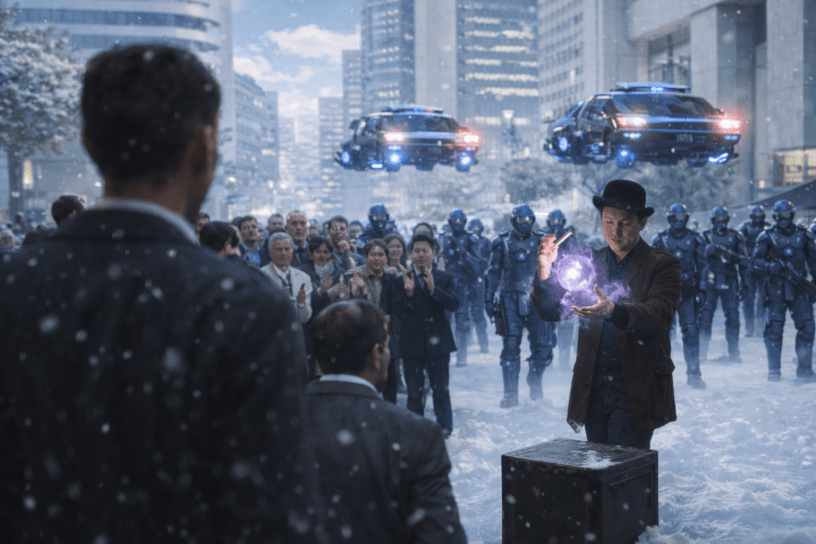The crowd had stopped moving, as most people were suddenly transfixed by a street illusionist who appeared to be pulling objects out of thin air to the cheers and applause of those assembled. In the distance, he heard the alert tones of police aircars approaching over the rooftops and converging on the plaza, then suddenly stopping, turning back, and landing on the outskirts. They were forming a perimeter. Such a tactic would normally make sense, depending on the perimeter size. Given the number of people, the number of points of egress, and the size of the crowds they would have to scrutinize, Clay was convinced this one played to his advantage.