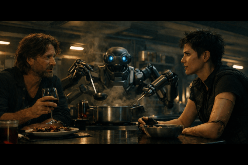 “I’m not offended, it’s just … a synthetic mind that enjoys cooking, but can’t eat, says prayers to a God he can’t believe in, thanking him for synthetic ingredients he pulled out of a wall dispenser and stirred into a stew?”